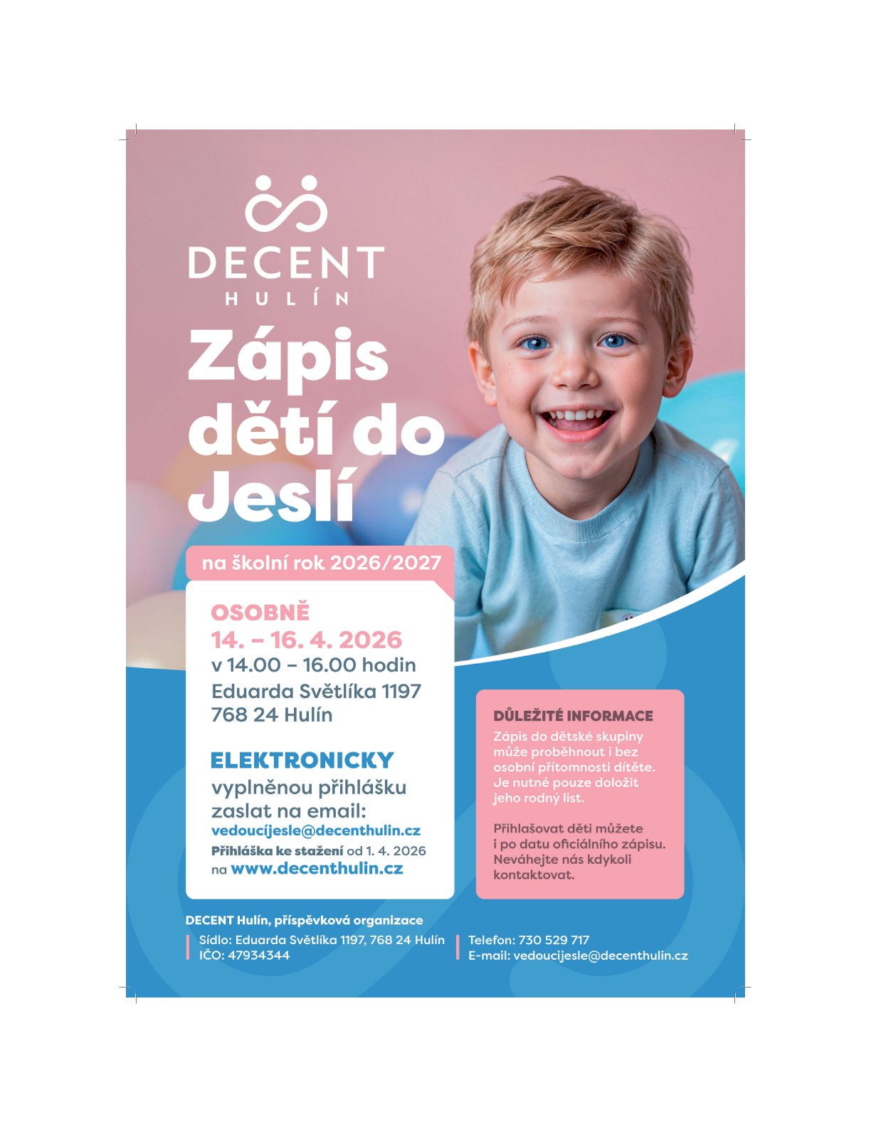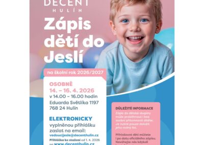 Pobyt v dětské skupině přináší dětem mnoho podnětů. Učí se komunikovat s vrstevníky, sdílet hračky, spolupracovat při hrách i respektovat jednoduchá pravidla. Pečující osoby – dětské zdravotní sestry, učitelka i dvě chůvy v Hulíně zásadně označované jako „tety“, zároveň připravují pestrý program, který podporuje přirozenou zvídavost dětí. Hry, pohybové aktivity, tvoření nebo pobyt venku pomáhají rozvíjet motoriku, fantazii i sociální dovednosti. Děti se učí objevovat svět kolem sebe v bezpečném a přátelském prostředí. O tom všem referují nejenom webové stránky Decentu, ale i čerstvě spuštěná Facebooková stránka.